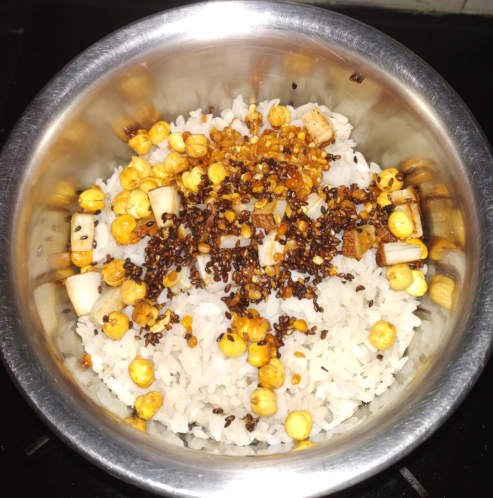 - Finally pour the palm jaggery syrub over the aval and mix well