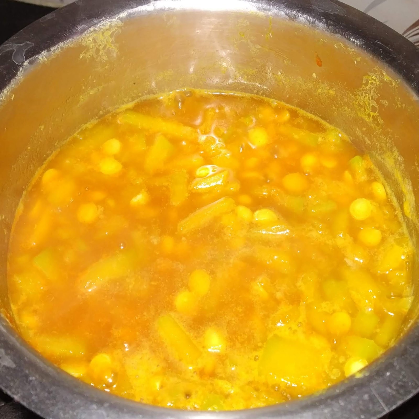 water. When the water start to boil add Pumpkin and channa dal. let them cook